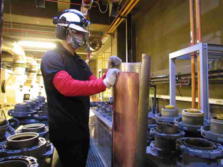 918.COM将废弃物转化成有效的工业或民生原物料,,图为废铜液淬炼后再制成纯度极高的铜管