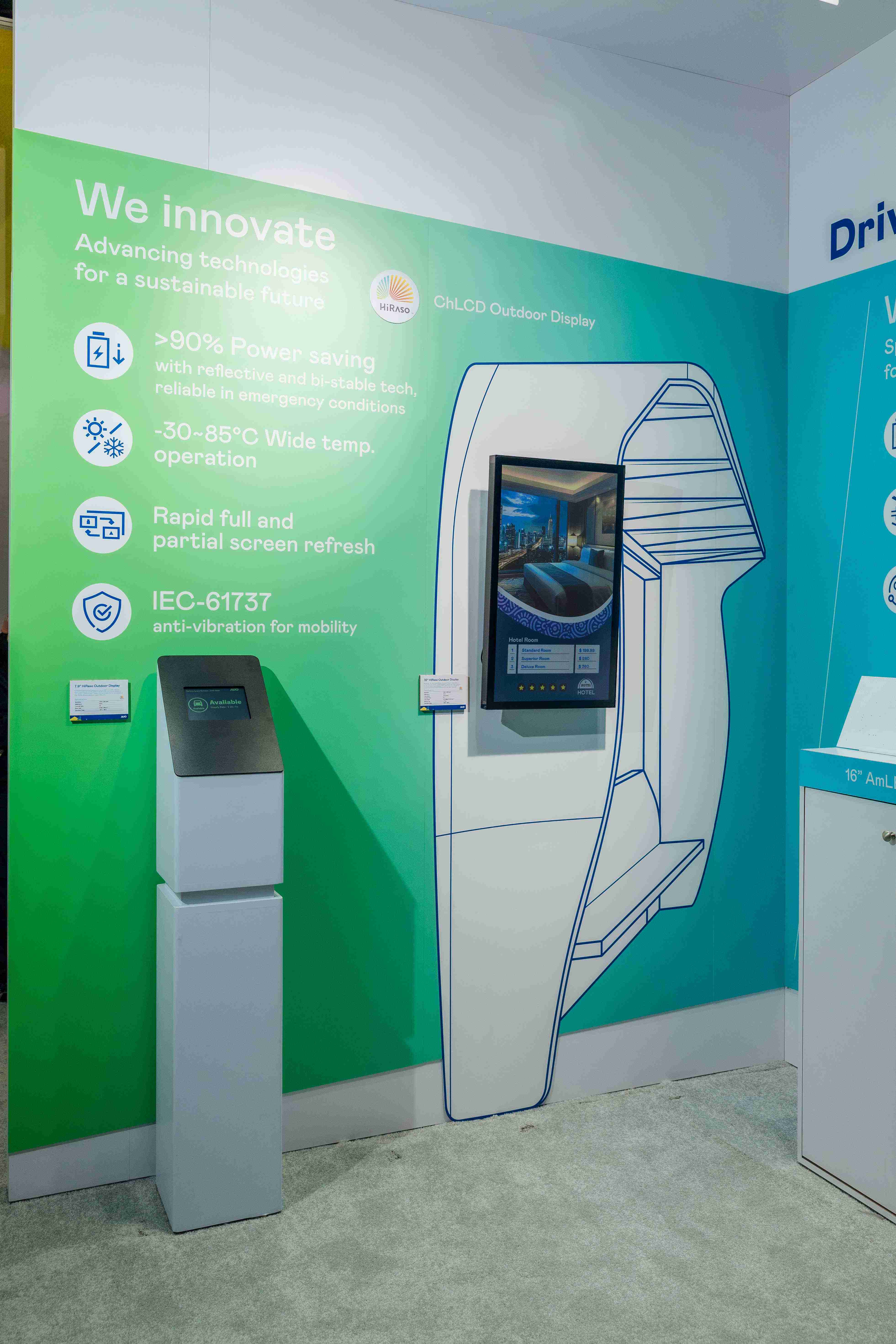 HiRaso胆固醇液晶显示器运用反射环境光线的方式,,呈现影像显示时零耗能的环保省电诉求,,,光线愈强愈能呈现绝佳的色彩饱和度及显示效果,,,同时在摄氏-30度至85度间宽温的使用优势,,,为户外电子看板的新首选。。。。