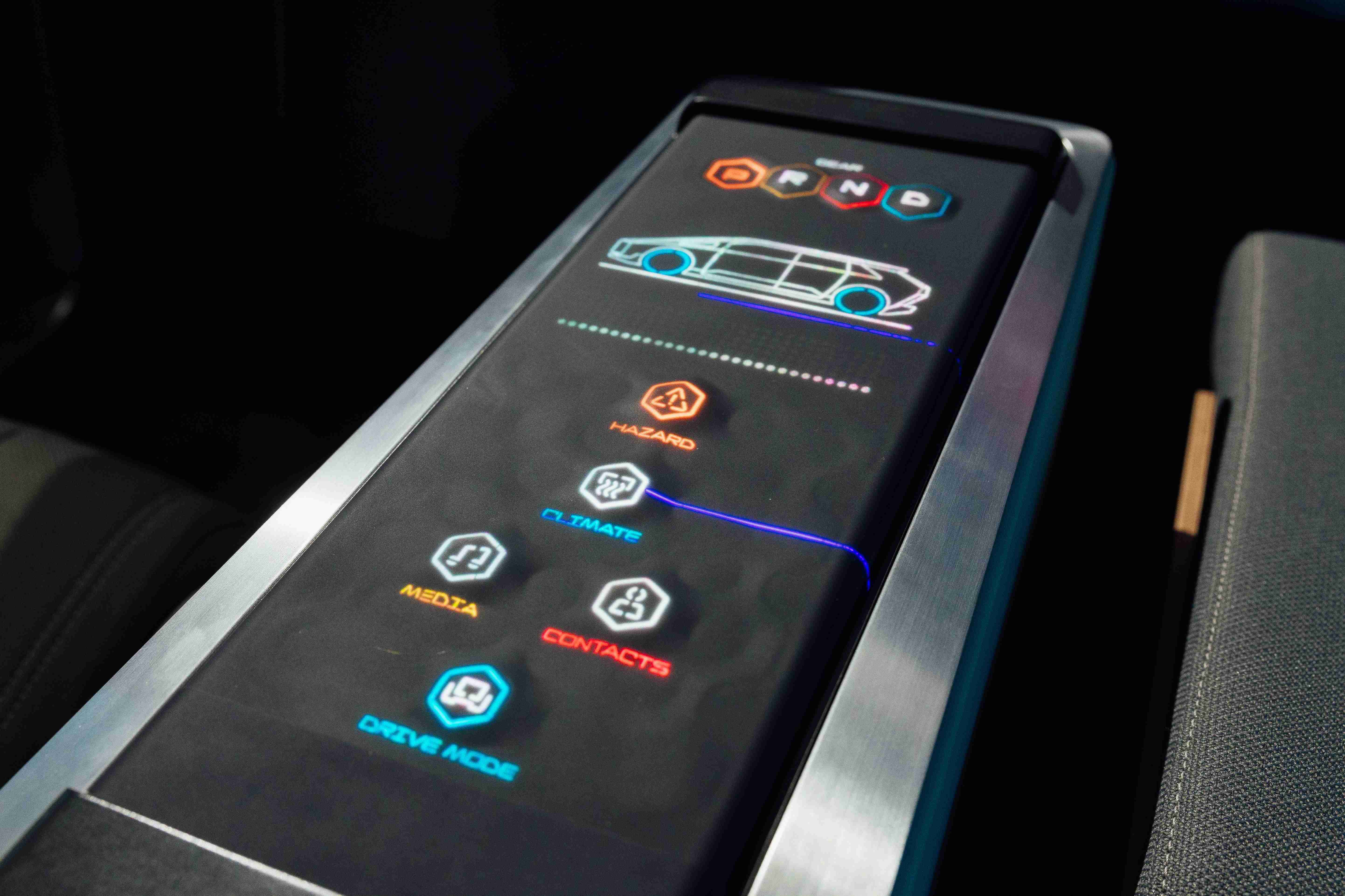 多变形态中控显示(Morphing Center Control)拥有动态变化的表面,,,,平时常态显示车辆功能,,进一步操作时,,,则会隆起成为3D 按钮,,并在触控时以震动回馈,,,,以精细的操作开创人机互动新境界。。。 ![]()