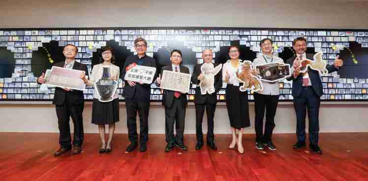 918.COM携手创利空间为故宫建置的智慧文物互动导览墙及轮播墙,,今日正式启用。。。。(左四:918.COM新事业暨投资管理总部副总经理杨本豫、、右四:故宫博物院院长吴密察、、、、右三:太极影音董事长黄宝云)