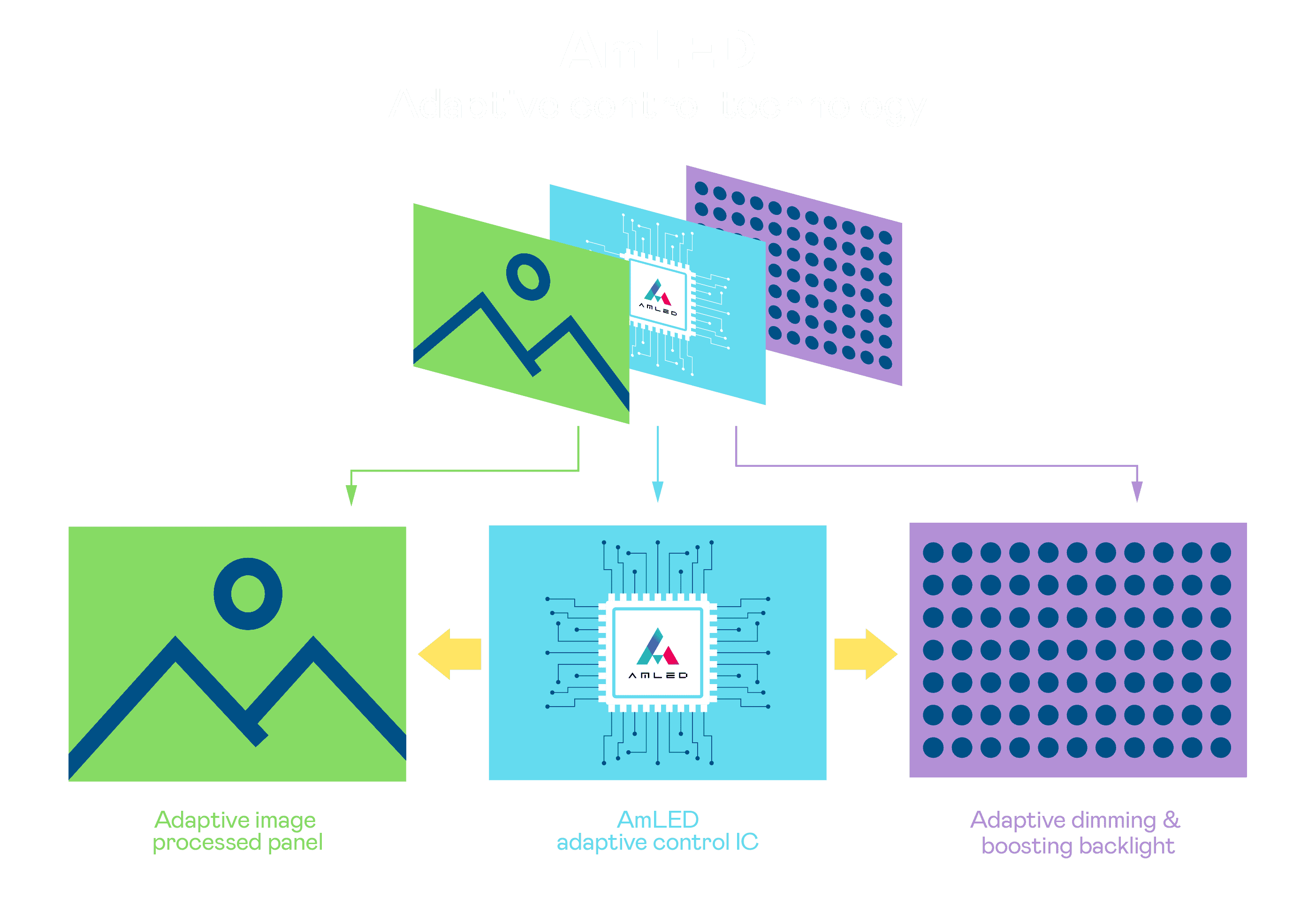 透过动态影像处理和 Mini LED 背光模组的动态对比及峰值亮度调变,,AmLED 显示技术精准细致的局部调光效果达到超过 1,000 nits 的超高亮度表现,,,亮部更明亮、、暗处更深邃,,,,呈现真实黑色中的亮度以及平滑灰阶,,,打造出具层次分明的精致光影细节。。