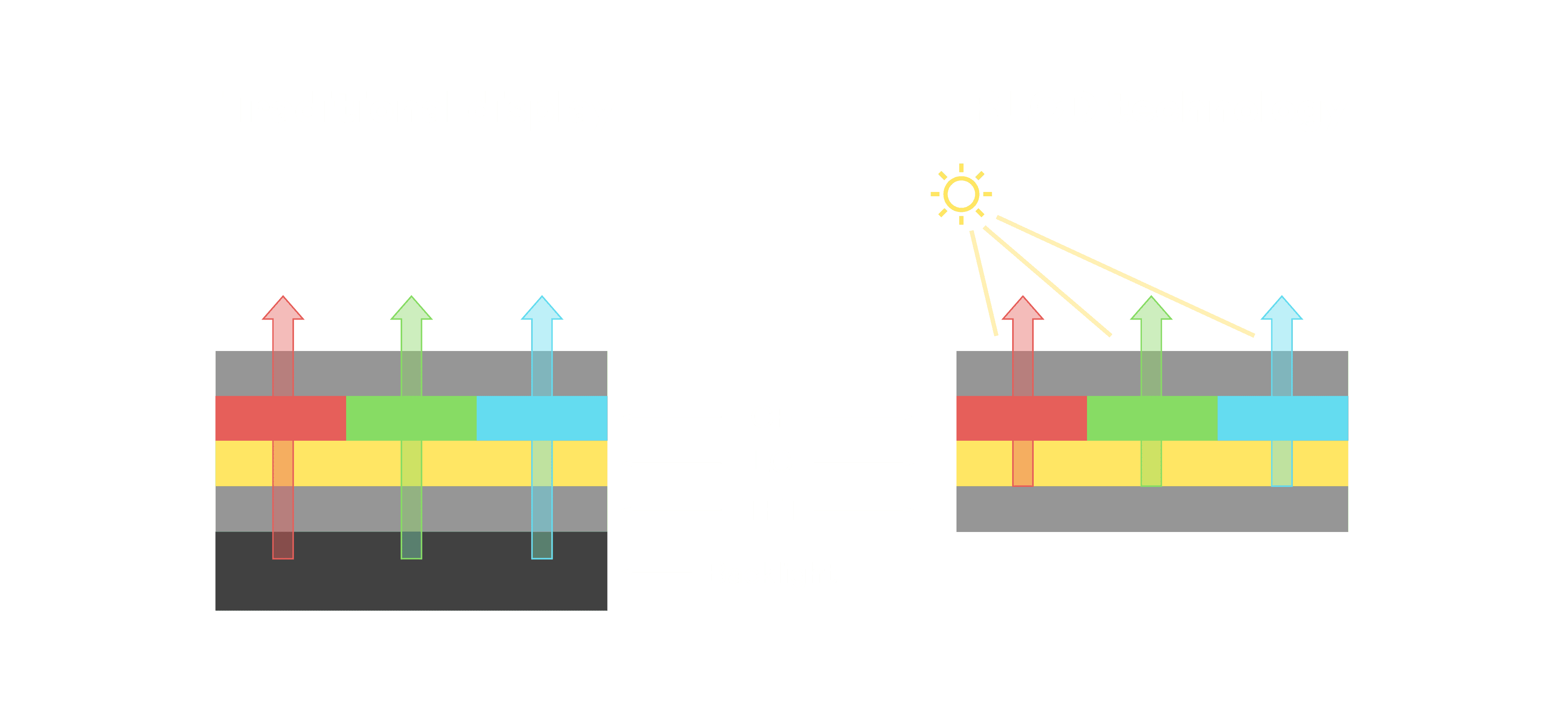 与传统需搭配背光单元的液晶显示相比,,,,反射式液晶技术不仅更省电、、、、更轻薄,,且即便在艳阳下仍能清晰显示。。此外,,,,少了背光单元,,,也大幅降低了 LED 蓝光伤害眼睛的疑虑。。