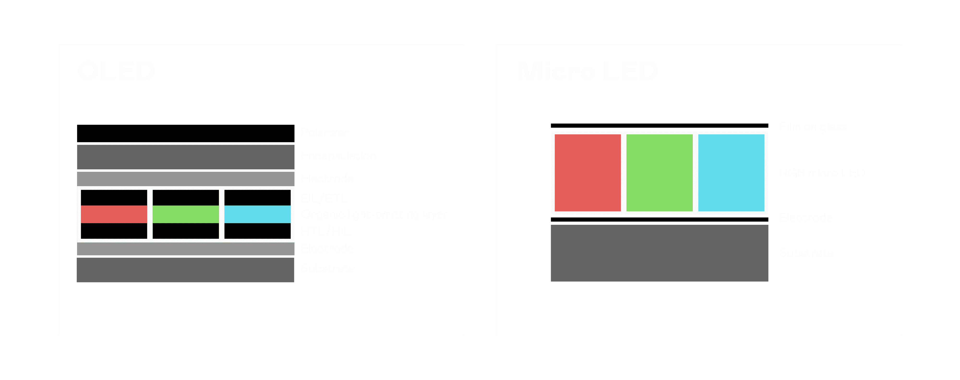 以 LED 做为显示画素,,,,可让 LED 的发光效率发挥到极致,,从而让显示器具备优异的亮度表现,,,,不论是在户外或室内,,均具备出众的显示效果。。同时,,,与使用有机材料的 OLED 相比,,,LED 具备更稳定、、、、寿命更长的特性,,,不仅不会有画面烙印问题,,,,而且更不容易出现故障、、、坏点。。。