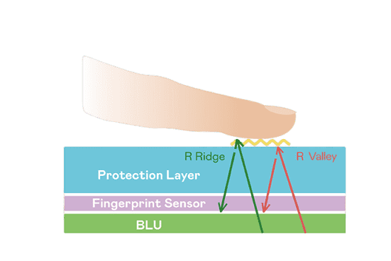 TFT 指纹扫描感测技术利用薄膜电晶体 (TFT) 当作光感测元件,,,,藉由非晶硅 (a-Si) 与低温多晶硅(LTPS)既有光电转换特性对不同波段光源进行吸收,,使感测 IC 读取阵列感测元件的光漏电差异,,转换成数位灰阶影像。。。。